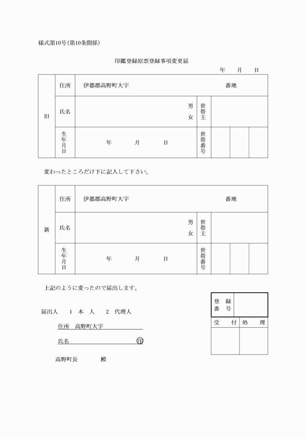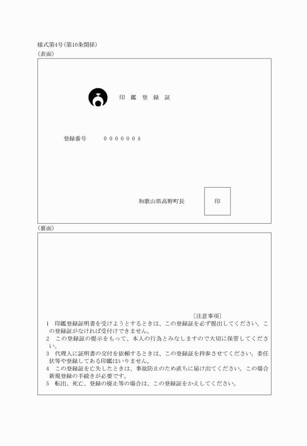 ○高野町印鑑登録及び証明に関する規則