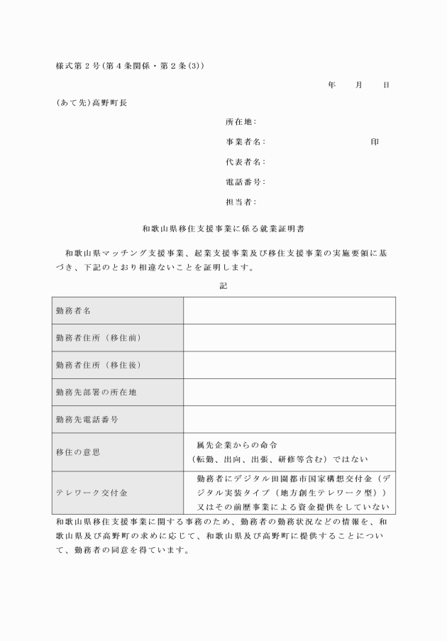 (2) 和歌山県移住支援事業に係る就業証明書(様式第2号)又は起業支援金の交付決定通知書の写し