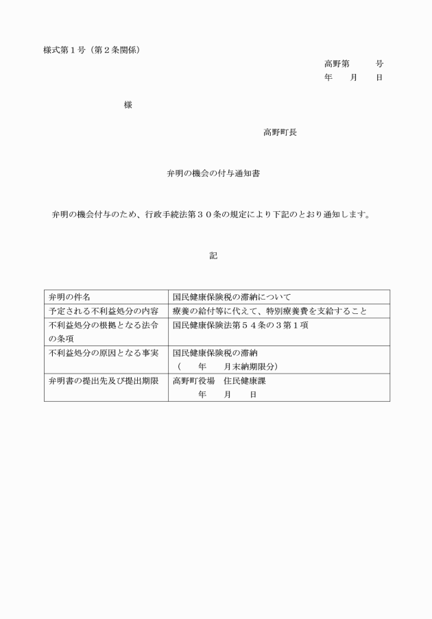 第10条 町長は、法第63条の2第3項の規定により、保険給付の額から国保税の滞納額を控除するときは、省令第32条の5の規定により、滞納世帯主に対し、保険給付額からの滞納国民健康保険税の控除通知書(様式第9号)によりあらかじめ通知するものとする。
