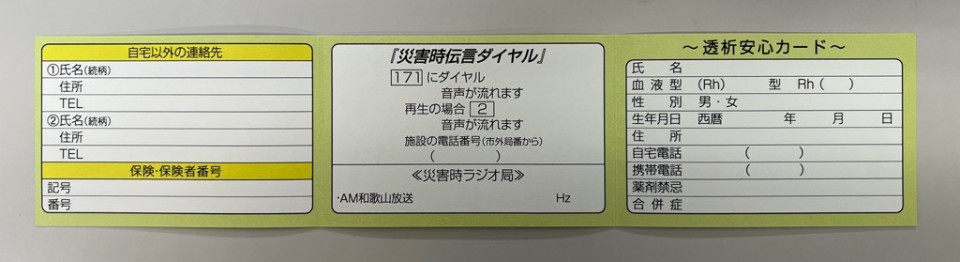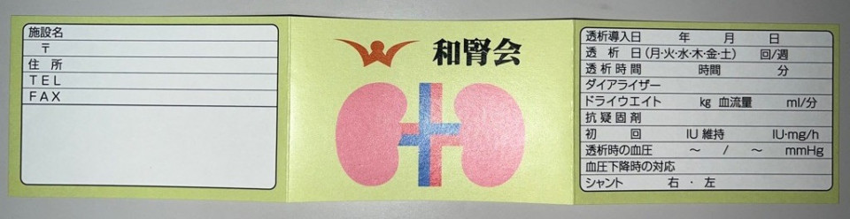 カードには、透析日などの透析に関する情報のほか、投薬してはいけない薬などの情報が記載できるようになっています。